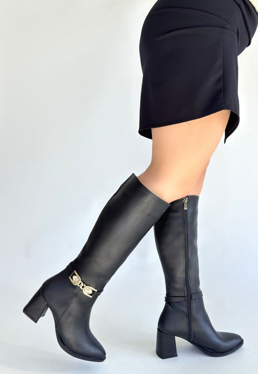 SAVE 50%Mooni Siyah Cilt Topuklu Çizme