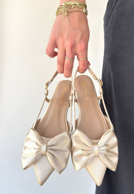 SAVE 50%Cenya Bej Saten Babet Ayakkabı
