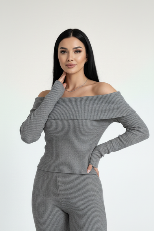 SAVE 50%Kadın Madonna Yaka Gri Alt Üst Takım