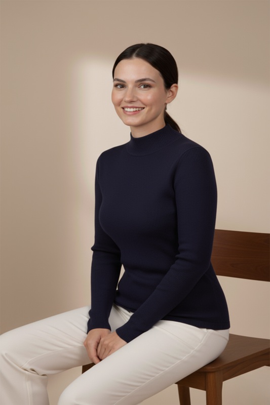 SAVE 50%Kadın Lacivert Balıkçı Yaka Bluz
