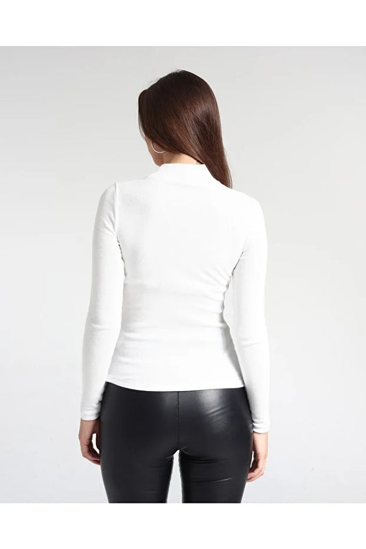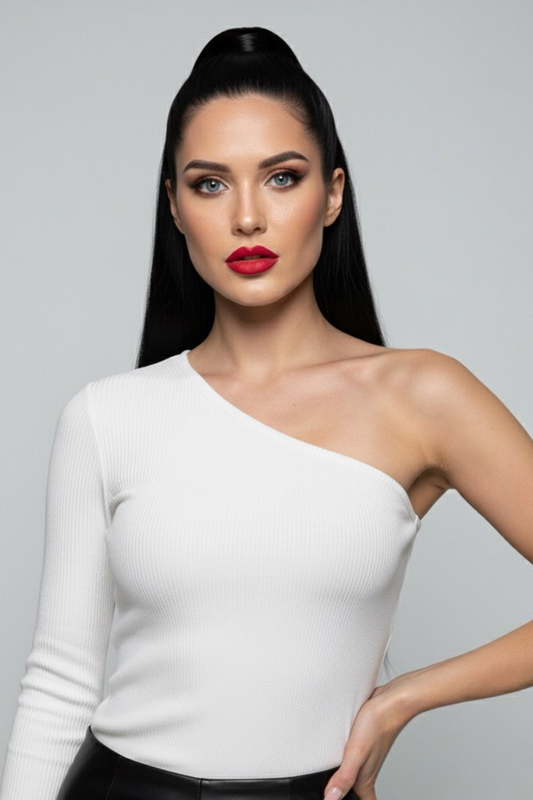 Beyaz Tek Omuz Uzun Kollu Kaşkorse Kadın Bluz