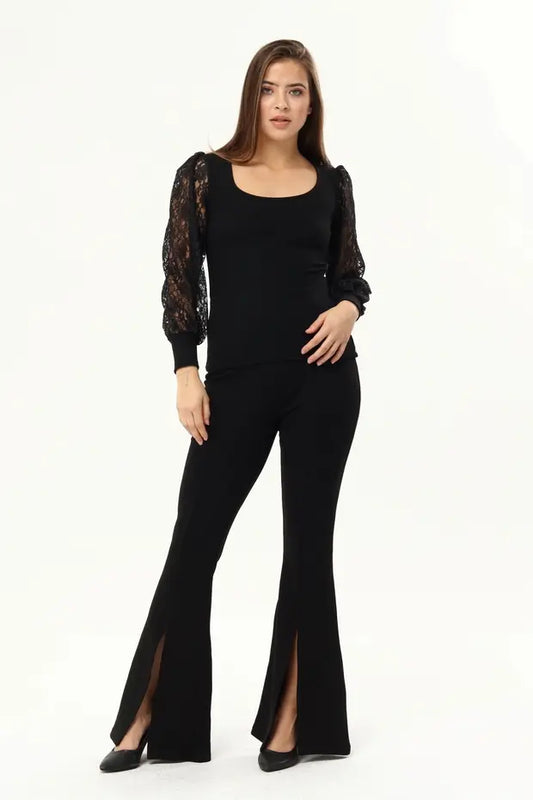 Kadın Siyah Kollar Dantel U Yaka Bluz