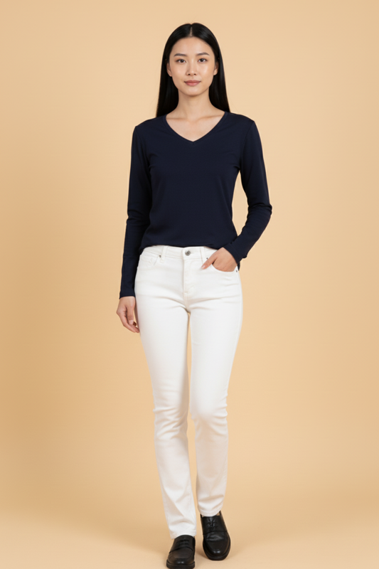 SAVE 50%Kadın V Yaka Lacivert Viskon Bluz