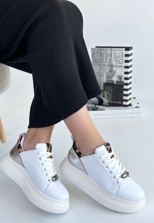 Kity Leopar Saten Bağcıklı Spor Ayakkabı
