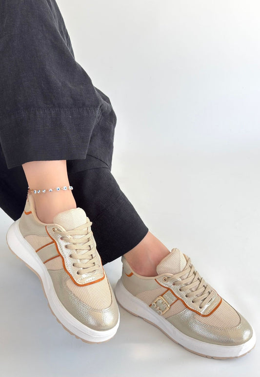 Yejja Bej Cilt Bağcıklı Spor Ayakkabı