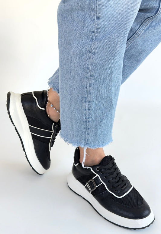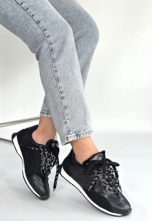 Jule Siyah Cilt Bağcıklı Spor Ayakkabı