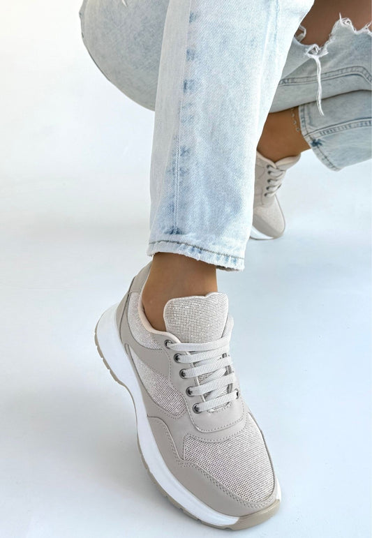 Tanwe Bej Cilt Bağcıklı Spor Ayakkabı