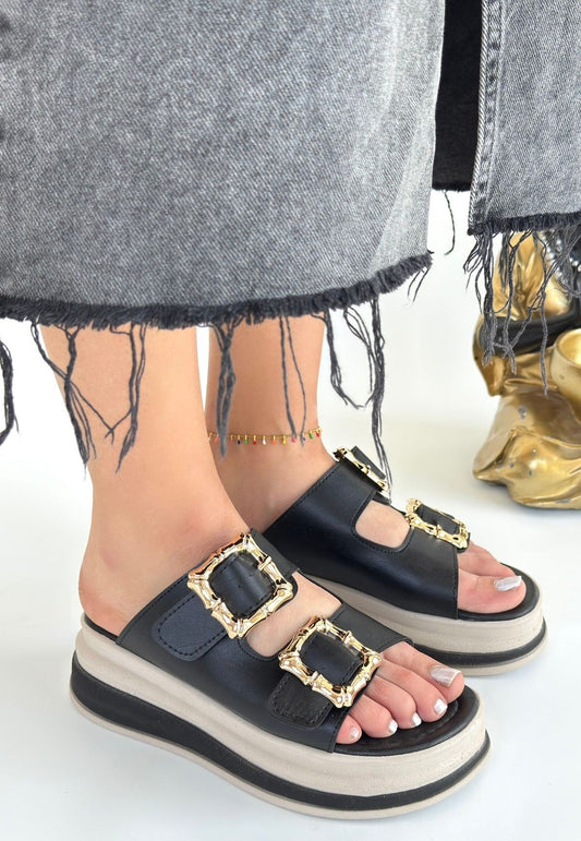 SAVE 50%Toha Siyah Cilt Tokalı Terlik