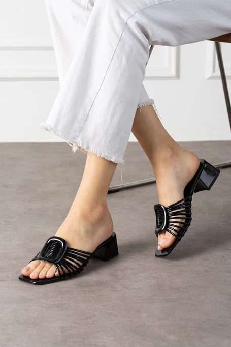 SAVE 50%Miyon Siyah Cilt Topuklu Terlik