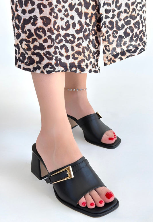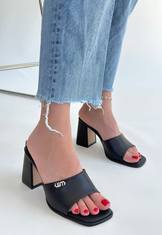 SAVE 50%Veor Siyah Cilt Topuklu Terlik