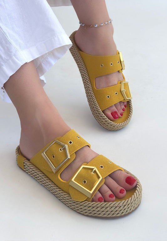 SAVE 50%Loera Sarı Nubuk Çift Tokalı Terlik