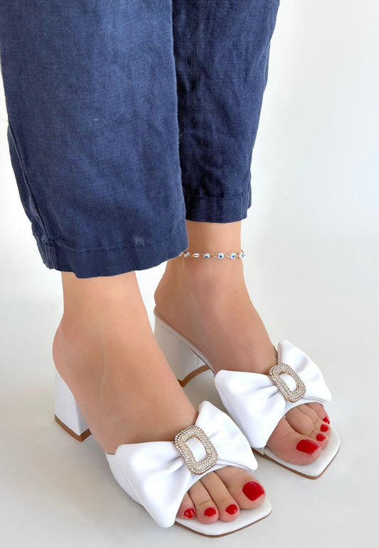 SAVE 50%Niyyar Beyaz Cilt Topuklu Terlik