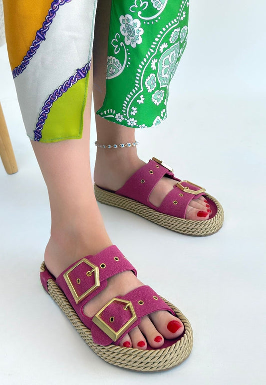 SAVE 50%Loera Pemba Nubuk Çift Tokalı Terlik