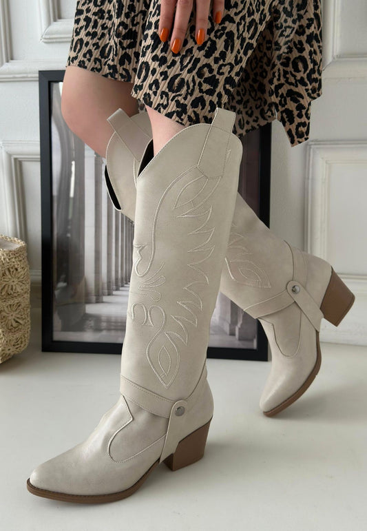Jilla Bej Cilt Tak Çıkar Topuklu Bot Ve Çizme