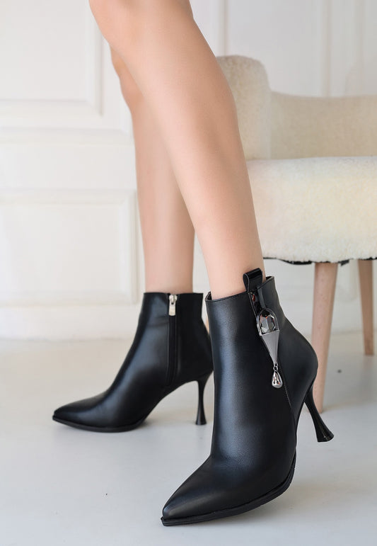 Lukana Siyah Cilt Topuklu Körüklü Bot